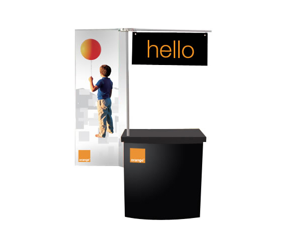 דלפק דיילת + מתקן לתליית מדיה פרסומית